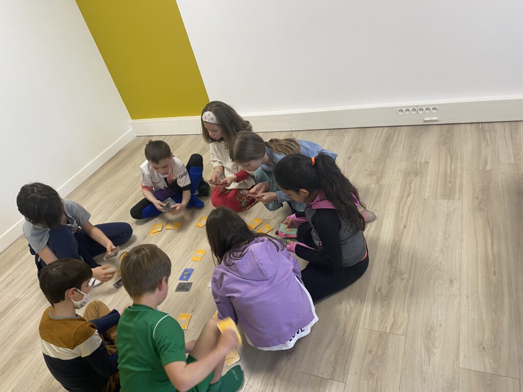 Cette étape permet, soit d’approfondir les bases vues et acquises au niveau précédent, soit de débuter la langue dans un environnement toujours très ludique. Les enfants apprennent très vite à cet âge-là, ils vont réussir à parler quelques mots en anglais via des jeux de rôles tels la recréation de l’histoire du petit chaperon rouge, ou par des jeux de cartes comme le Memory ou le jeu des 7 familles. Ces jeux en particulier permettent de travailler leur mémoire, ainsi que pratiquer la langue de plus en plus en groupe.